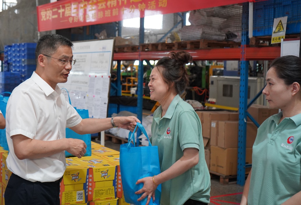 會前,高秉學走訪、檢查了蘭溪墩頭制刷與恩澤惠隆制刷企業廠區,慰問一線崗位