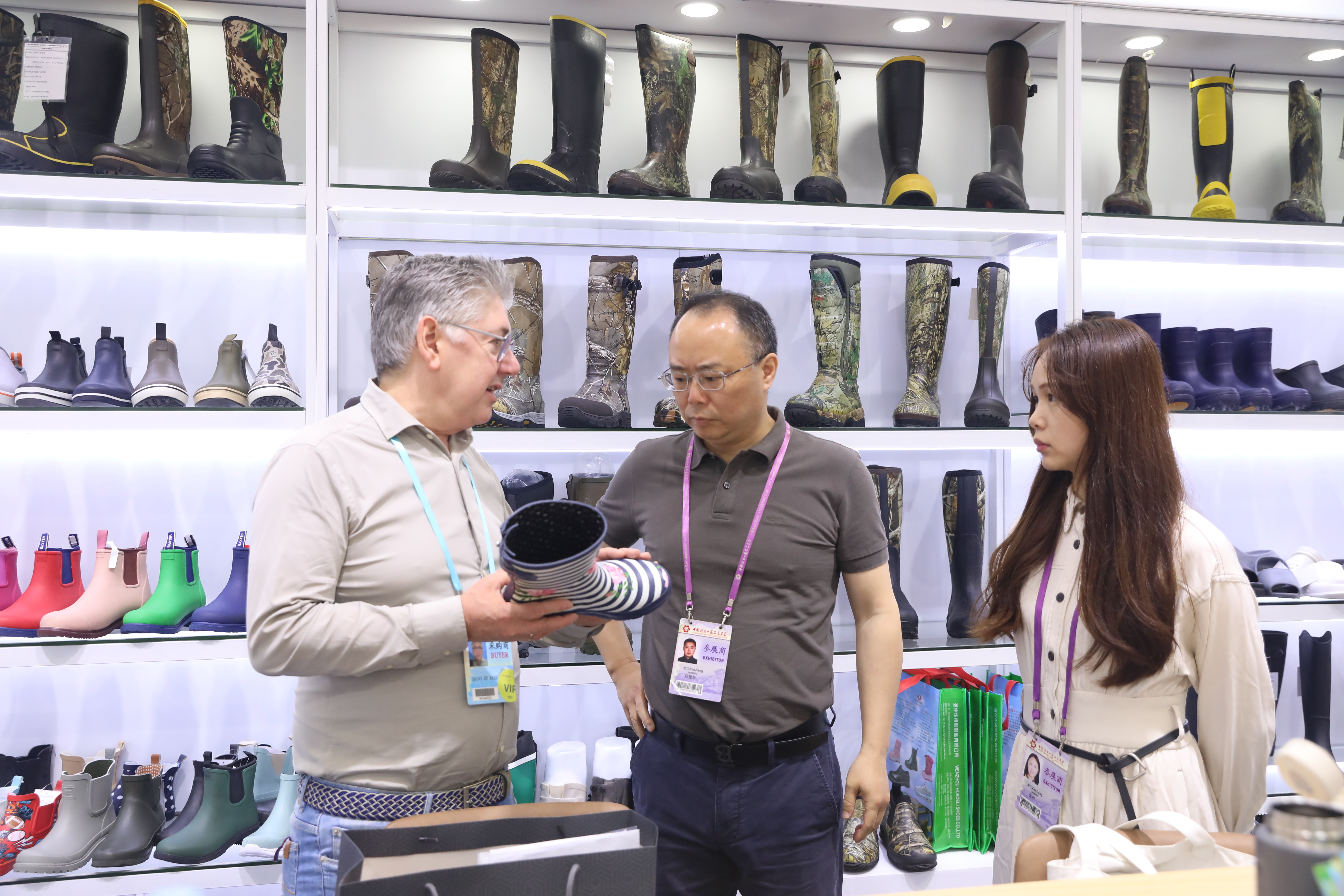 展會期間,省國貿集團董事長、黨委書記高秉學,副總經理、黨委委員張勇深入浙江土畜展位,詳細了解參展情況、市場變化和企業應對舉措。中國紡織品進出口商會會長曹甲昌、中國食品土畜進出口商會會長曹德榮先后走訪浙江土畜展位,就產品開發、訂單出運、當前外貿形勢等展開深入交流。