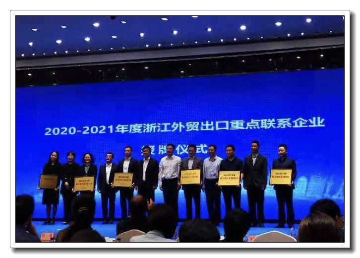11月19日上午,省商務廳聯合杭州海關、省貿促會舉辦RCEP浙江省自貿協定政策宣講啟動儀式,“2019年浙江出口名牌”“2020-2021年度浙江外貿出口重點聯系企業”榮譽企業授牌活動同期舉行,浙江土畜總經理楊躍勝出席并代表公司領獎。