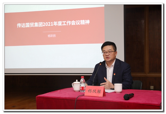 會上,公司總經理楊躍勝傳達了省國貿集團2021年度工作會議精神。楊總強調,一是要迅速把國貿集團年度工作會議精神傳達到每一位員工,凝聚發展共識,堅決做到“集團有號召、層層見行動”;二是要進一步校準坐標、完善規劃,提高工作的戰略性、前瞻性、科學性、協同性、能動性;三是要積極展現“開局即決戰、起步即沖刺”的戰斗姿態,奮力奪取一季度“開門紅”,為“十四五”開好局奠定堅實基礎。