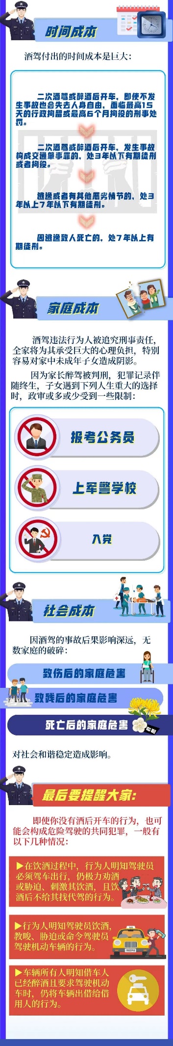 為進一步嚴明紀律規(guī)矩,督促引導(dǎo)公司廣大員工特別是黨員干部帶頭遵紀守法,堅決遏制酒駕醉駕違紀違法行為的發(fā)生,公司紀委現(xiàn)將酒駕醉駕成本清單予以整理,供大家警醒學(xué)習。